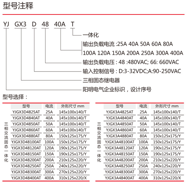 三相交流/整流固態(tài)繼電器系列 >> 三相交流固態(tài)繼電器一體化 YJGX-3D/3A-AT