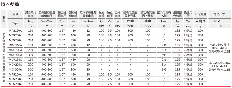 產(chǎn)品特性:●體積小,標(biāo)準(zhǔn)封裝;● 非絕緣,底板為共用極;● 真空+ 充氫保護(hù)焊接技術(shù);● 優(yōu)良的溫度特性和功率循環(huán)能力;● 高浪涌電流,低正向壓降。產(chǎn)品應(yīng)用:●電焊機(jī)電源.● 各種DC 電源.● 變頻器。產(chǎn)品代號(hào):M102B、M103B
