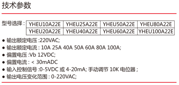 Features: 1. Small volume, waterproof, anti vibration, no noise, no contact arc; 2. long service life, strong anti-interference, high reliability, wide adjustment range; 3. The DC load adopts MOSFET; 4. The output voltage can be adjusted by external 0-5V or 4-20mA signal; 5. Screw fixed installation, standardized size, with safety cover; 6. .